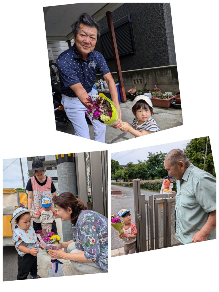 毎年、花の日に合わせてご近所の皆さんに感謝の気持を込めてお花をお届けしています。今年は新しくなられた自治会長さんのところにもお伺いしました。皆さん喜んでくださいました